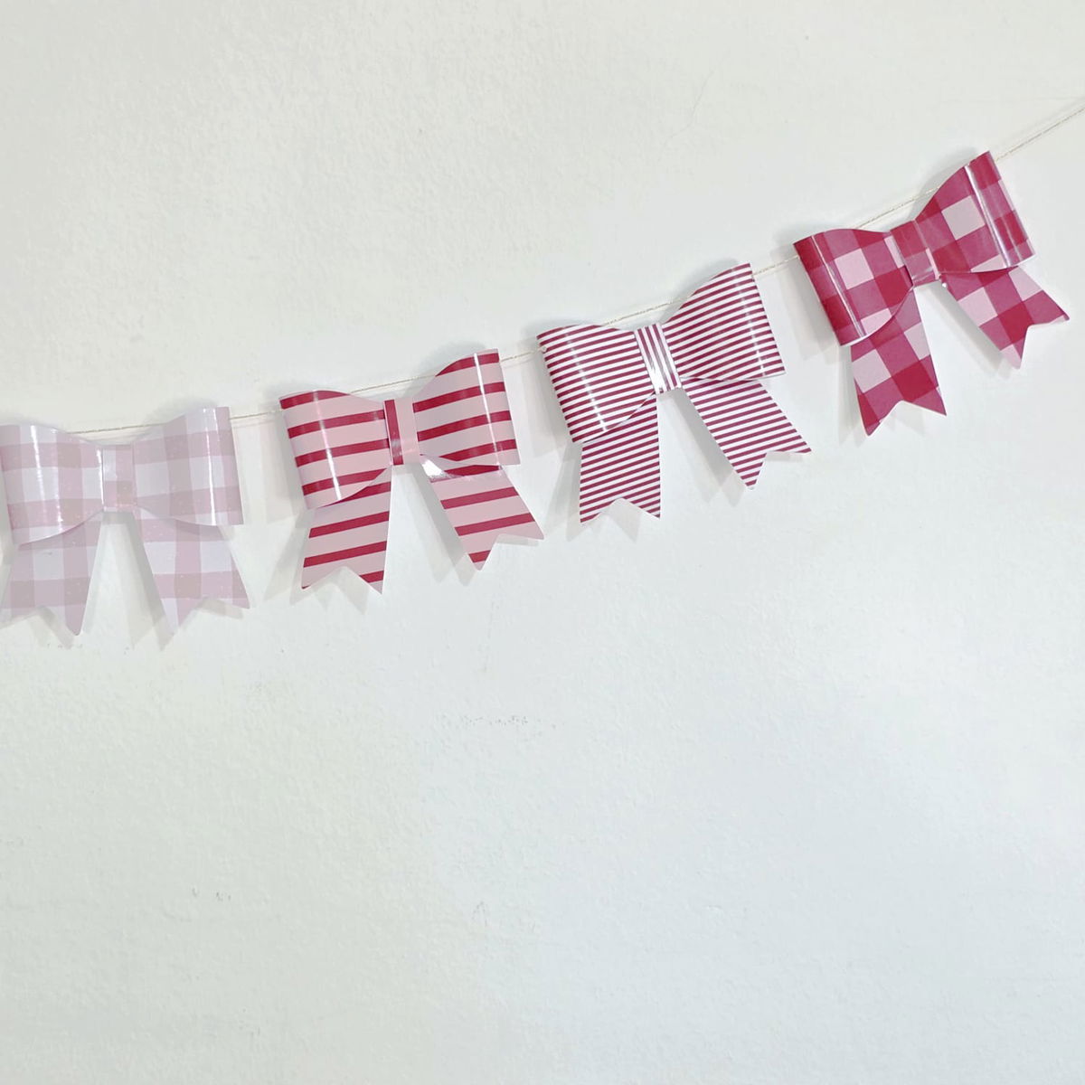 Contiene 10 moños de papel listos para ensamblar (cada parte con cinta bifaz para su facil armado) y 2 metros de hilo de lurex.