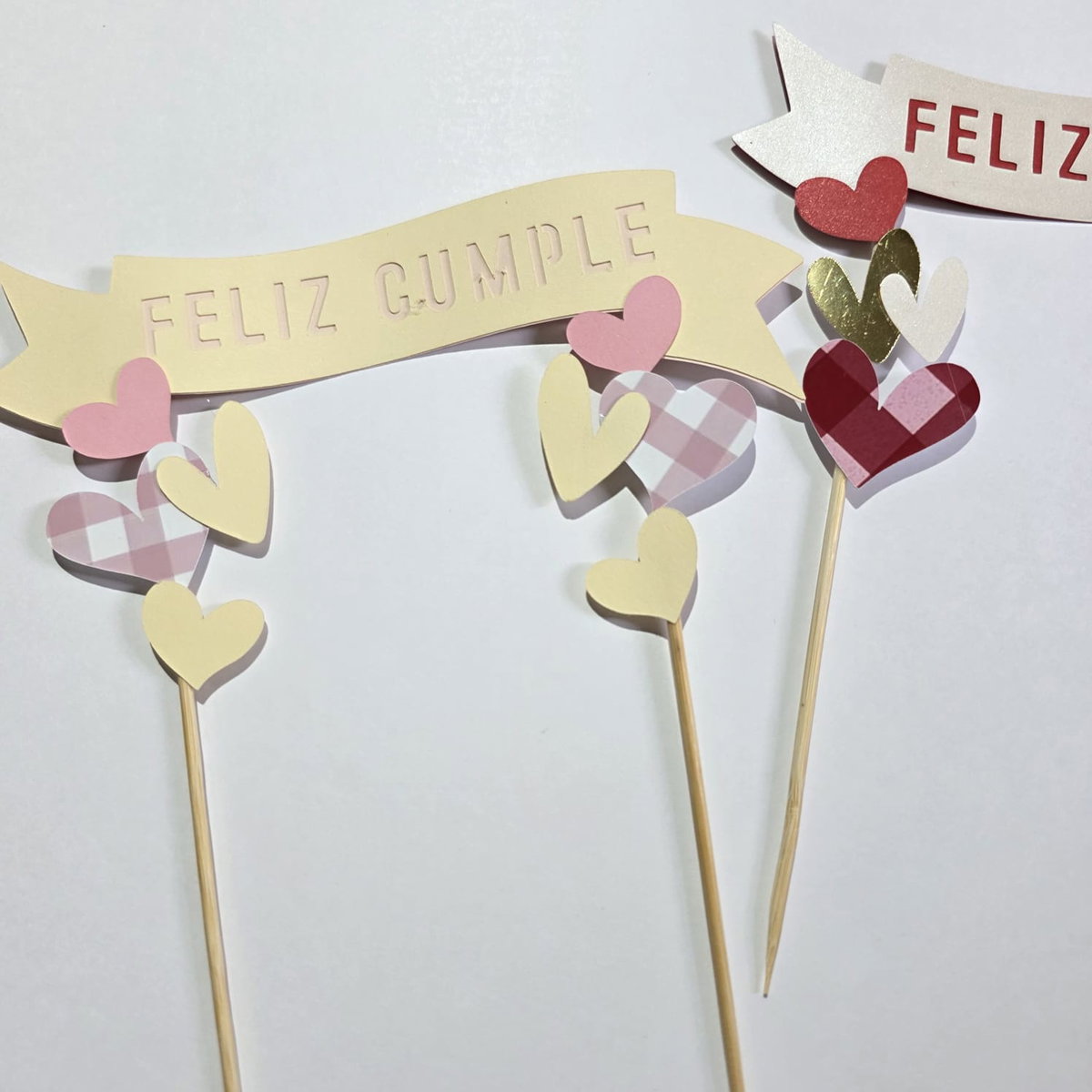 Toppers de papel, con detalle troquelados (Corazones). Variedad de combinaciones de colores.
