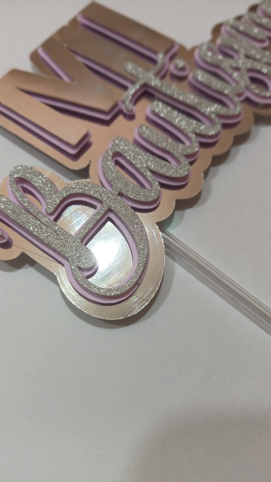 Elaborado en 3 capas de papeles que incluyen cartulina, metal y glitter