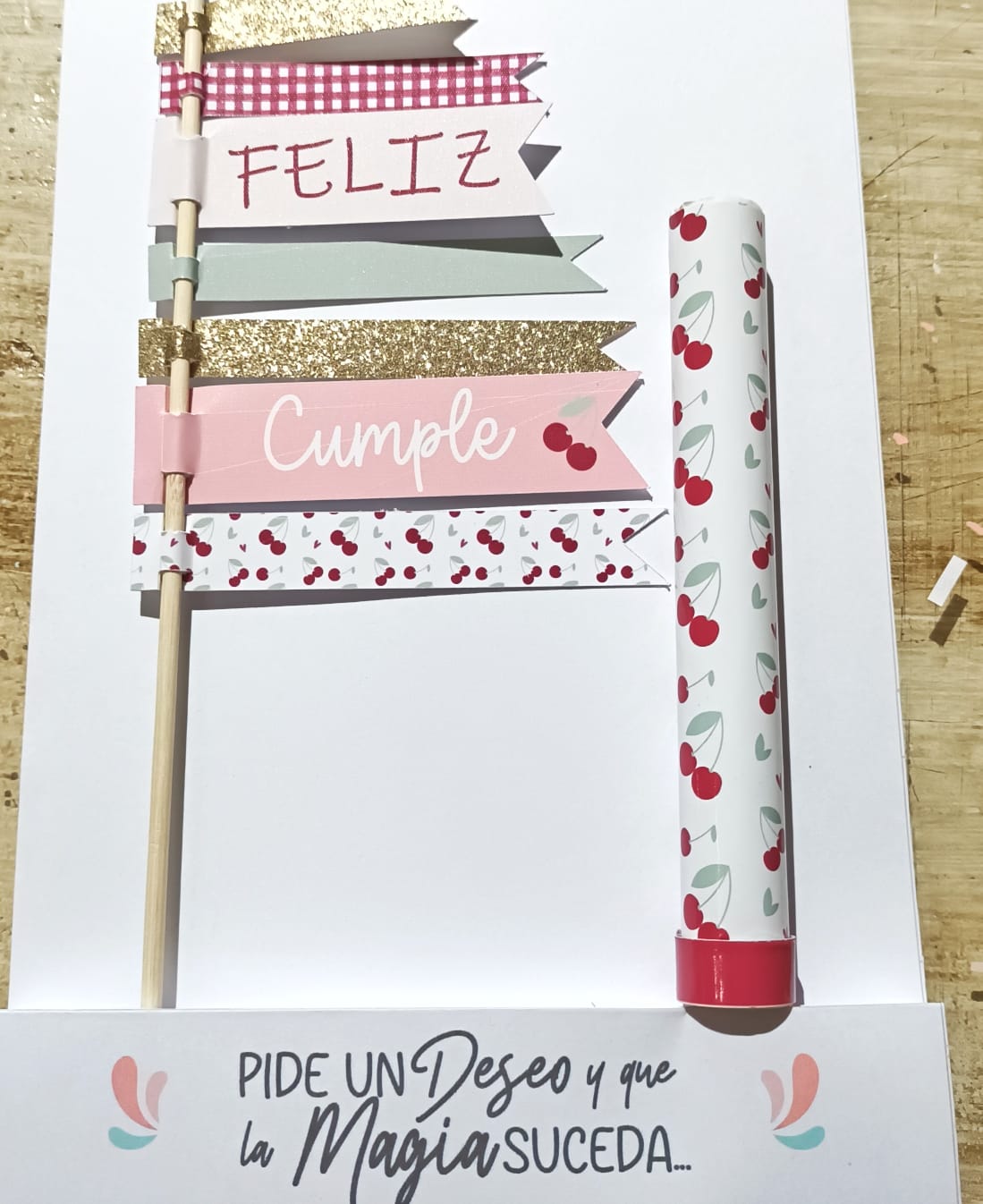 El set incluye 1 cake topper de papel y bengala forrada, son complemento perfecto para nuestro Kit Toppers de Polyfan.