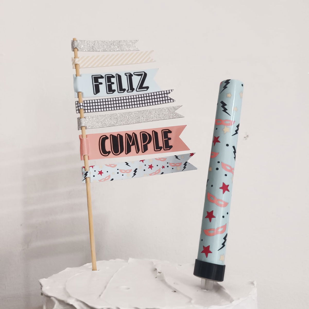 El set incluye 1 cake topper de papel y bengala forrada, son complemento perfecto para nuestro Kit Toppers de Polyfan.