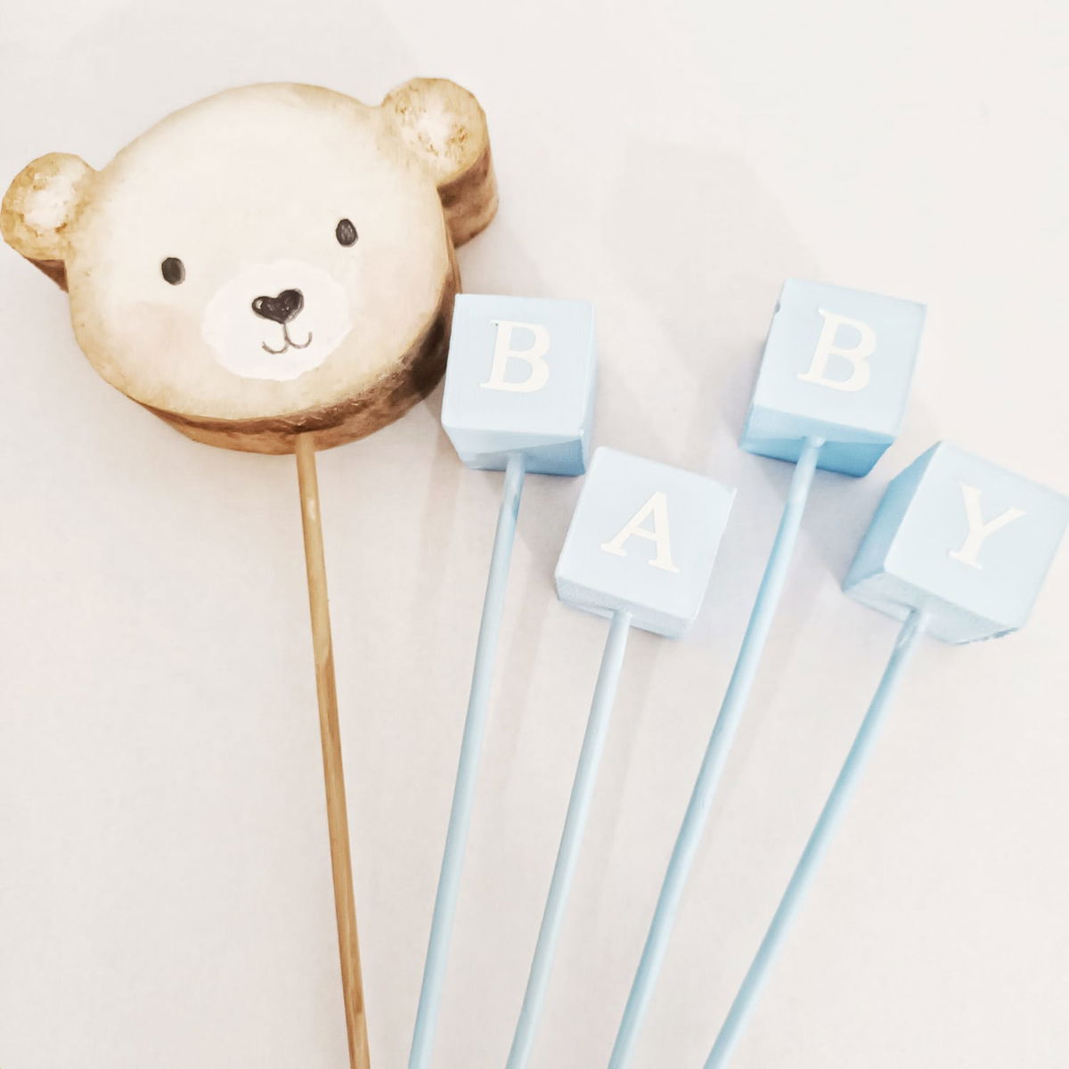 Kit de 5 figuras de polifan, los cubos tienen detalles en vinilo de corte formando la palabra BABY